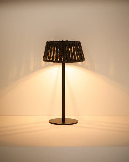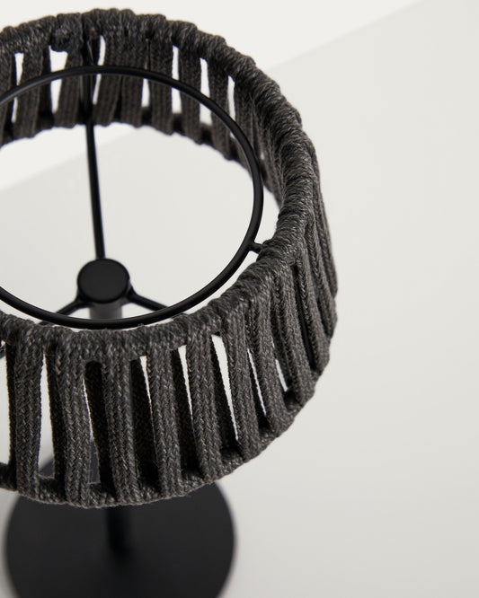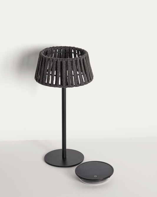 Lampe de table solaire d’extérieur Aldet en corde plate et pied en métal noir