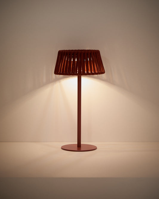 Lampe de table solaire d’extérieur Aldet en corde plate et pied en métal terracotta