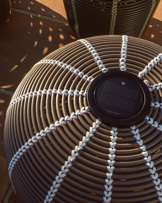 Lampe de table solaire d’extérieur Garoina LED en rotin synthétique taupe Ø 50 cm
