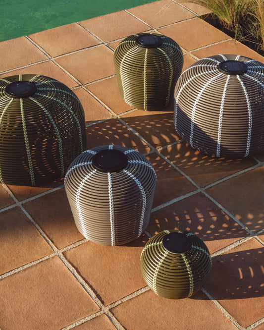 Lampe de table solaire d’extérieur Garoina LED en rotin synthétique vert Ø 50 cm