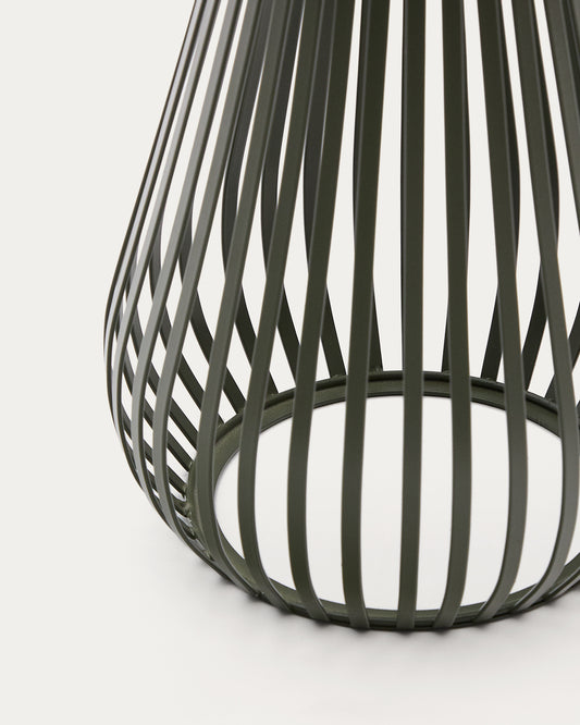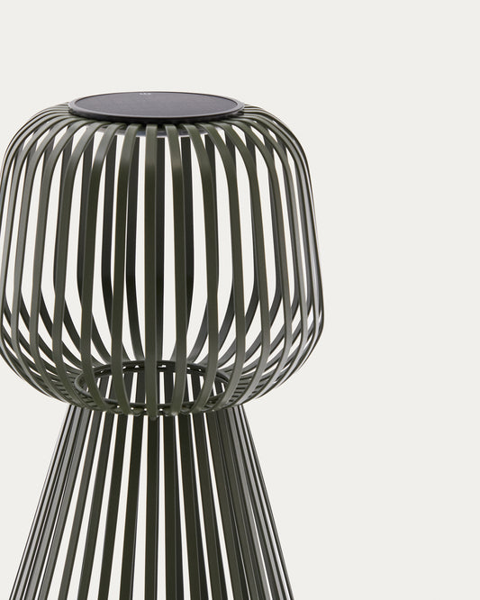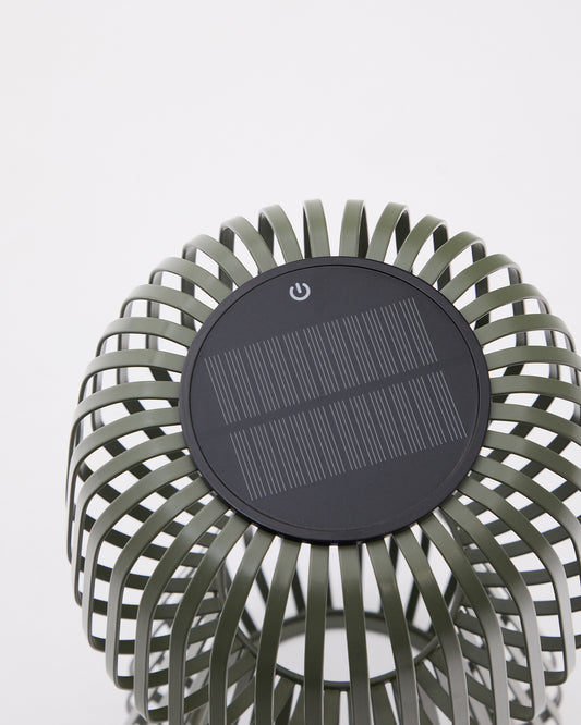 - Lampe de table portable en métal vert avec panneau solaire amovible intégré.