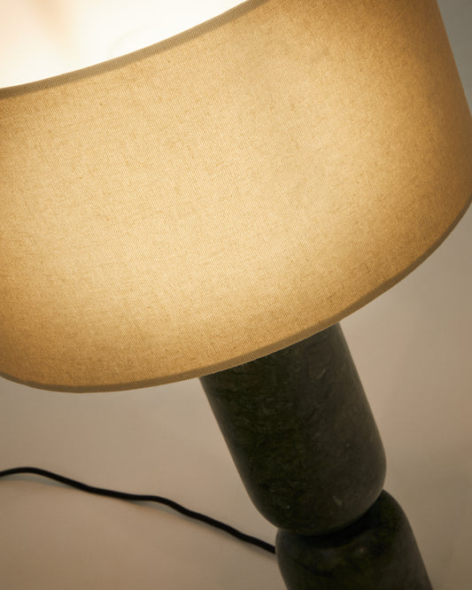 Lampe de table Vex en marbre vert et abat-jour en lin gris.