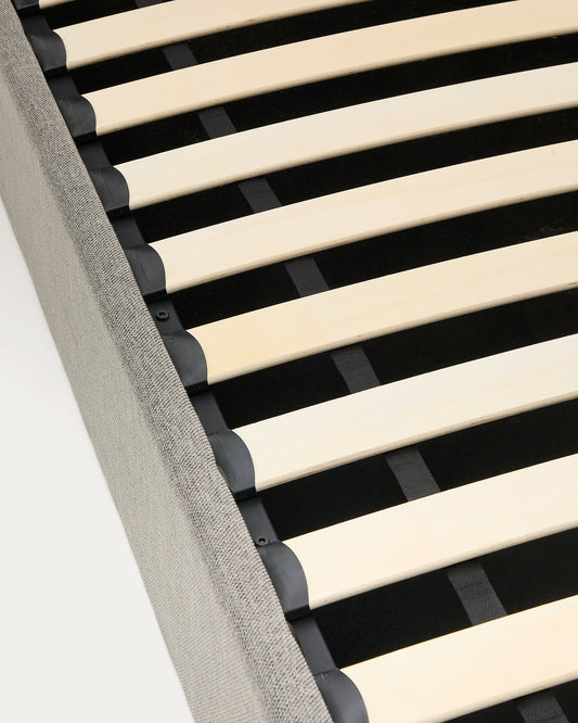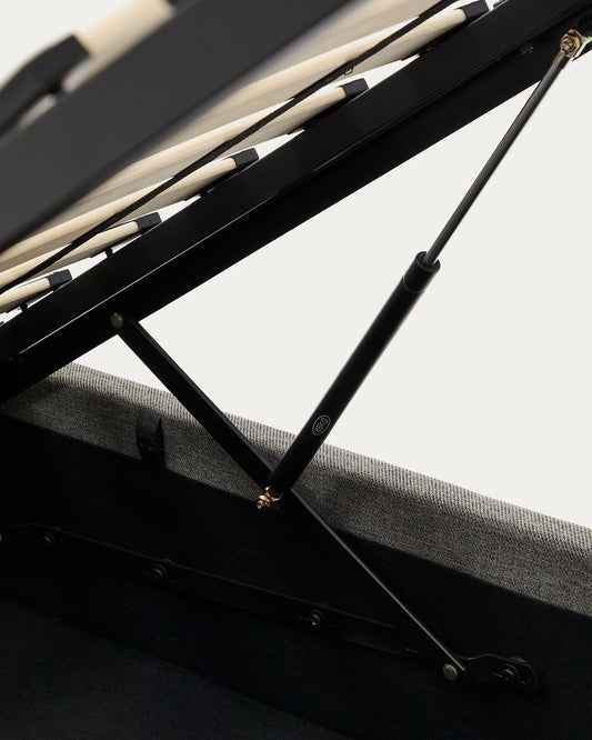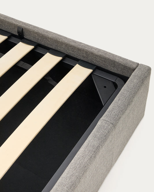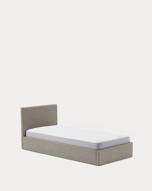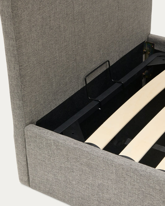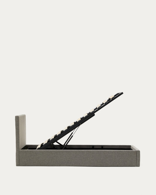 Lit Nahiri gris avec coffre relevable pour matelas de 90 x 200 cm