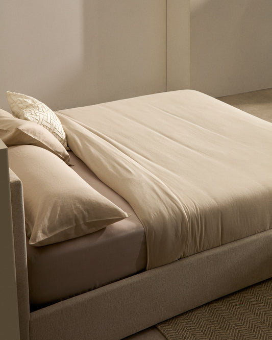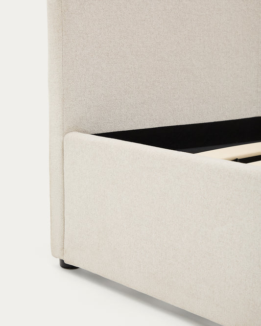 Lit Nahiri en chenille beige avec coffre relevable pour matelas de 160 x 200 cm