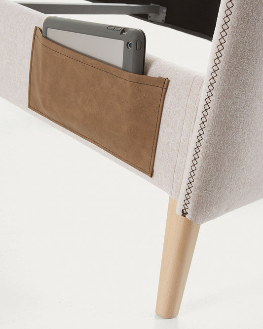 Lit déhoussable Dyla beige avec pieds en bois de hêtre pour matelas de 150 x 190 cm