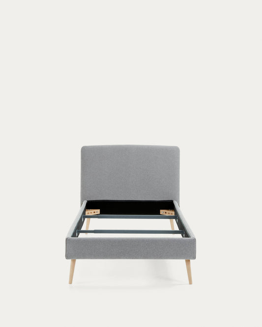 Lit déhoussable Dyla gris clair avec pieds en bois de hêtre pour matelas de 90 x 190 cm
