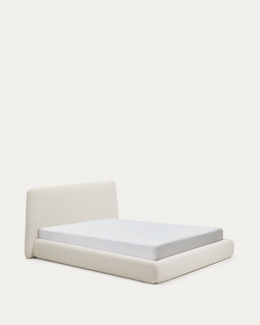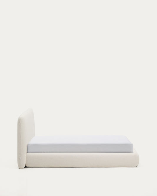 Lit déhoussable Martina en chenille écrue pour matelas de 160 x 200 cm