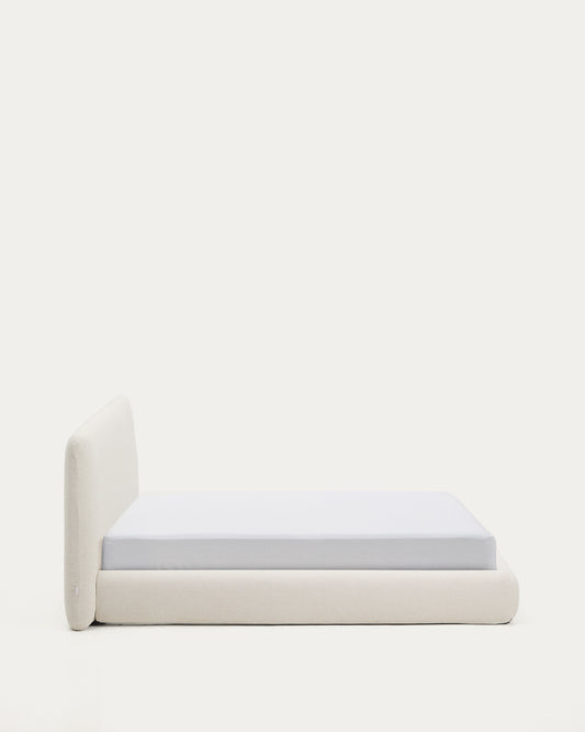 Lit déhoussable Martina en chenille écrue pour matelas de 180 x 200 cm