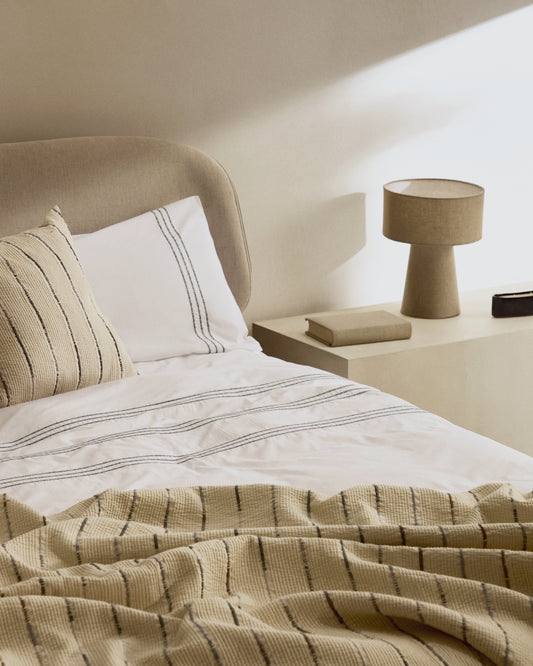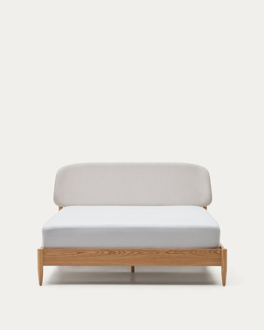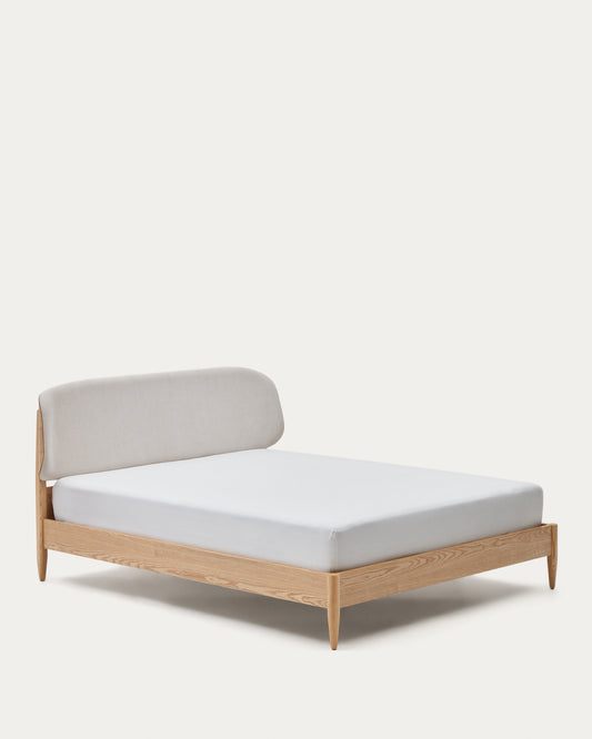 Lit Octavia contreplaqué de frêne et tête de lit tapissée blanc FSC Mix Credit 180 x 200 cm