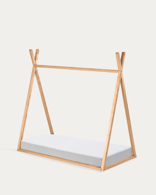 Lit tipi Maralis en bois de hêtre avec finition naturelle pour matelas de 70 x 140 cm