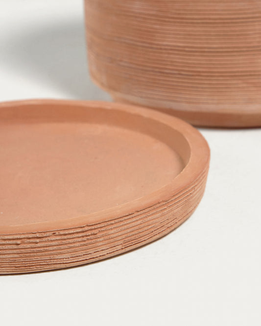 • Inclus des soucoupes en terre cuite à placer en dessous, au cas où vous souhaiteriez conserver l’excédent d’eau pour une absorption progressive par la plante.