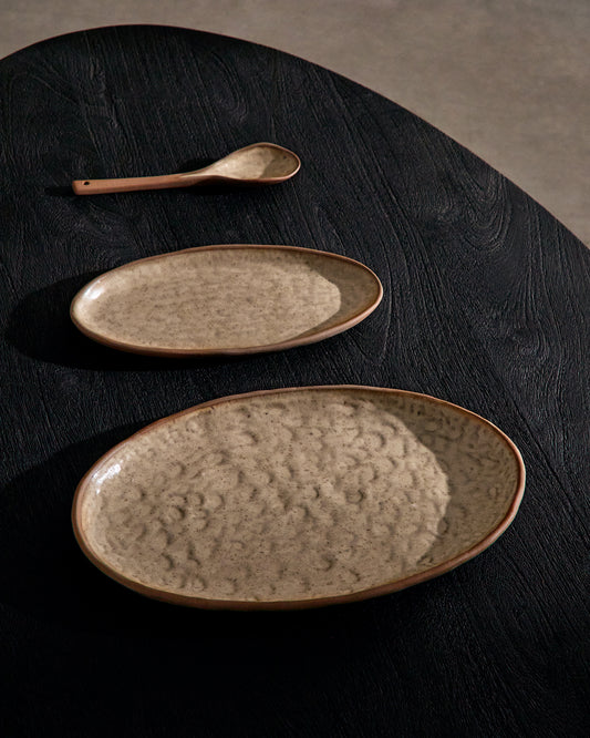Lot Zunel de 2 assiettes et une cuillère en céramique beige