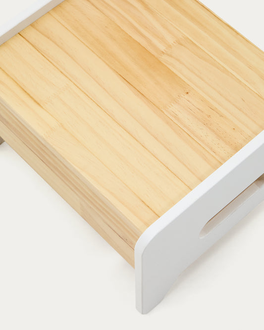 Marche-pied pour enfant Cecilia en bois de pin naturel et blanc