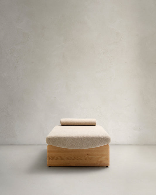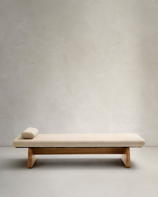 Méridienne Topaz en tissu chenille beige et bois de frêne finition naturelle 200 cm FSC 100%