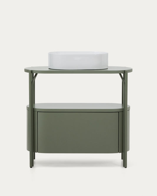 Meuble de salle de bain Arely avec structure en acier et MDF laqué vert 90 x 40 cm