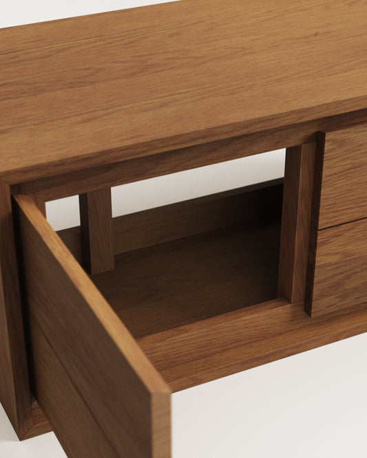 - Meuble de salle de bain en bois de teck finition noyer avec 2 portes.