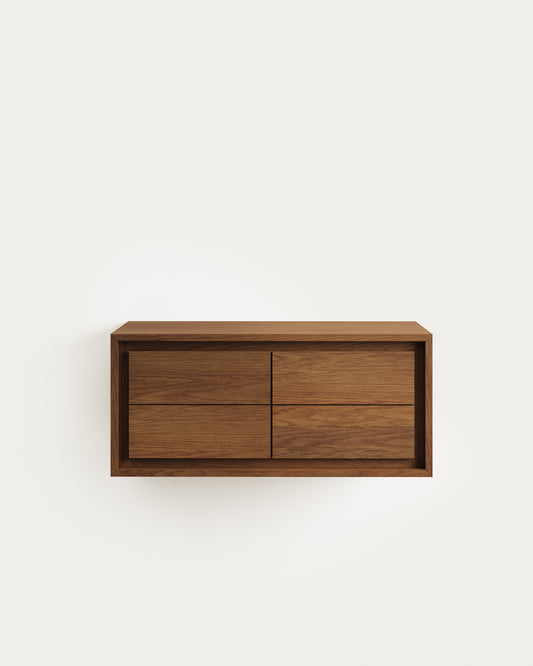 Meuble de salle de bain Kentaen bois de teck finition noyer 90 x 45 cm