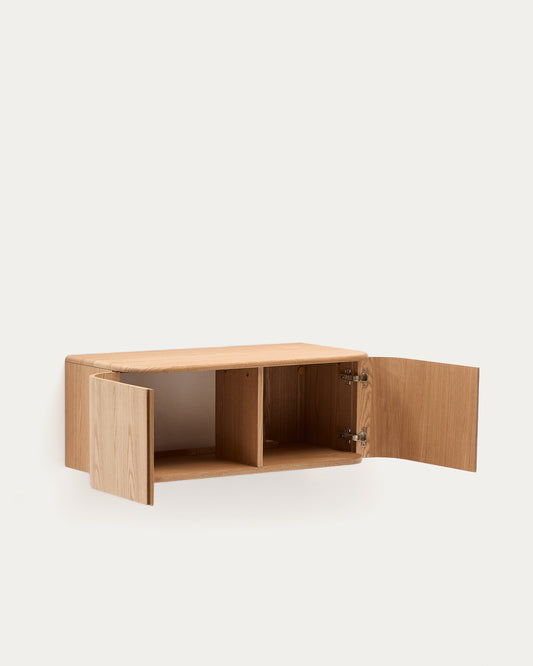- 2 portes avec mécanisme de fermeture silencieux et 2 compartiments à l’intérieur. Largeur totale avec portes ouvertes : 115 cm.