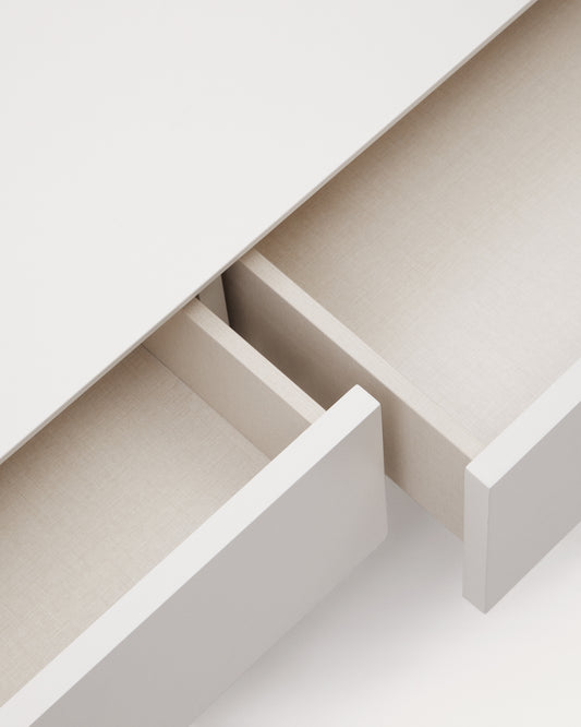 Vedrana est la combinaison parfaite de laqué blanc et d'acier. Créée par l'équipe de Kave Home, elle est parfaite pour tout type de maison et de style, et elle sera votre alliée pour conserver vos espaces bien rangés. La fonctionnalité et le design se rejoignent dans cette collection.