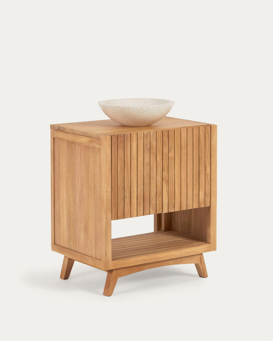 - Meuble de salle de bain en bois de teck finition naturelle avec 2 portes.