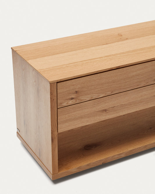 Meuble TV Alguema 3 tiroirs en placage de chêne finition naturelle 200 x 51 cm