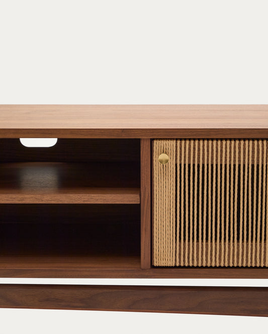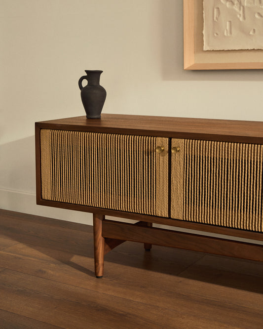 Meuble TV Elan 3 portes en placage et bois de noyer et corde 200 x 50 cm FSC 100 %