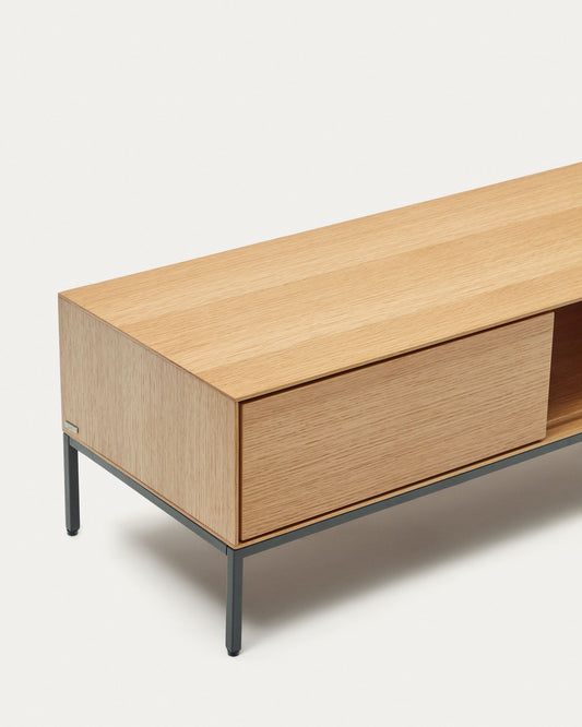 Meuble TV Vedrana 3 tiroirs placage de chêne et pieds en acier noir 195 x 35 cm