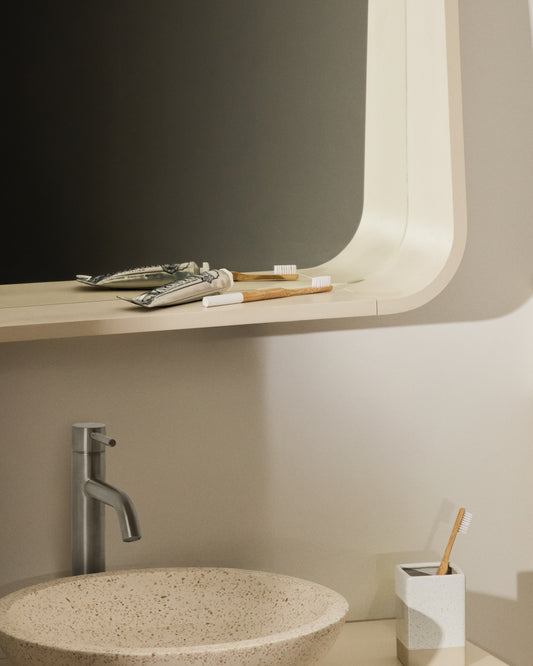 Miroir Salaya en contreplaqué de frêne avec finition laquée beige 90 x 60 cm