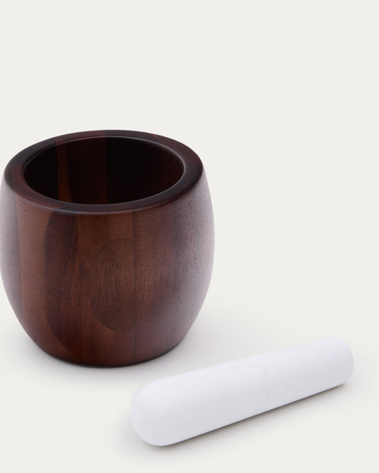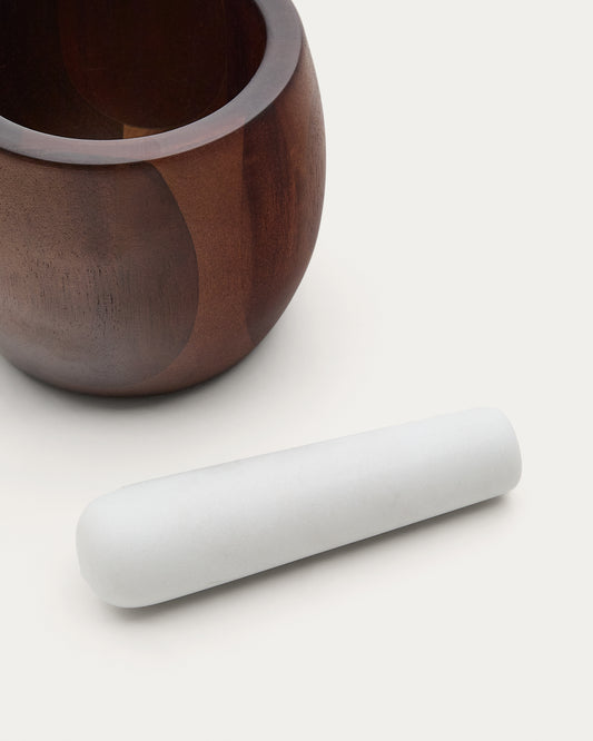 Mortier Tori en bois d’acacia et marbre blanc FSC 100%