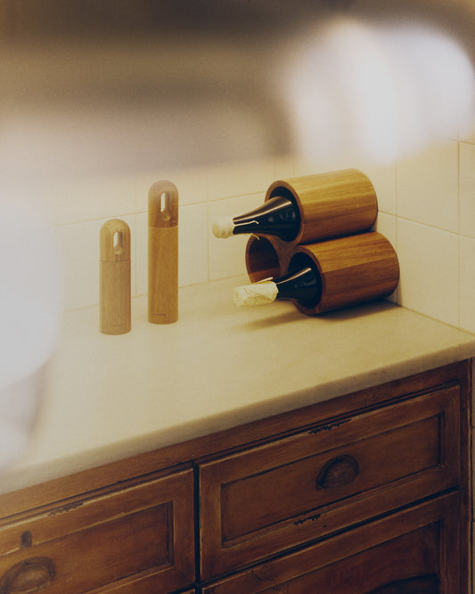 - Moulin à poivre et à sel en bois d’acacia et céramique.