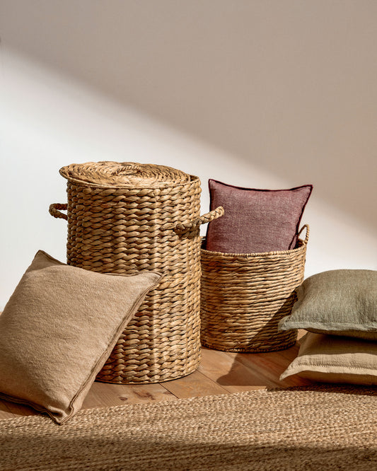 Le panier à linge Yessira, en jacinthe d'eau et tressé à la main, nous prouve que même les objets du quotidien peuvent avoir du style. Pour ranger vos coussins et plaids à côté du canapé ou pour votre coin buanderie.