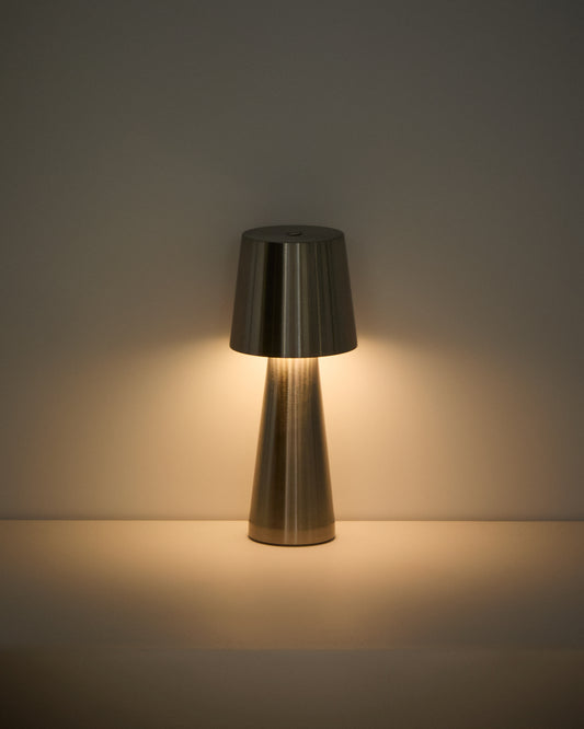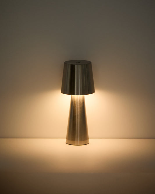 Petite lampe de table Arenys en métal avec finition argenté brillant
