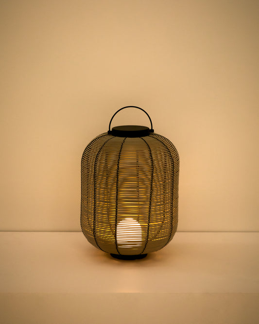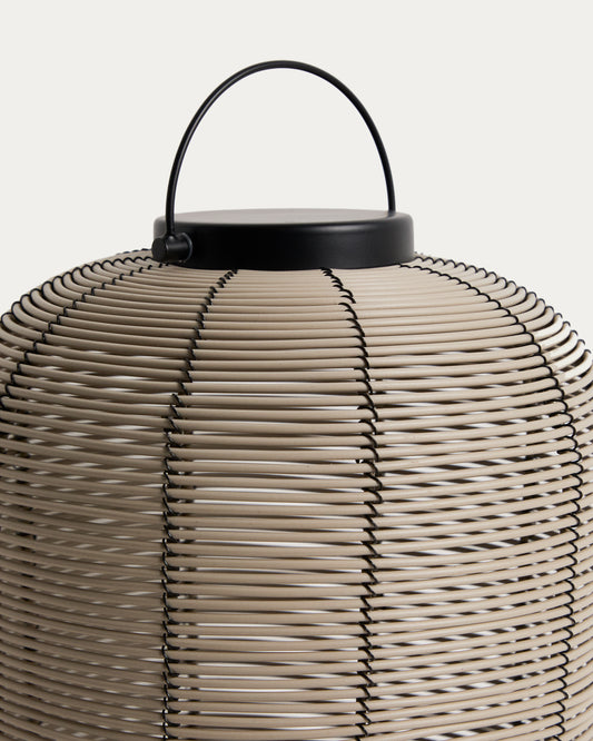 Petite lampe de table portable Saranella LED en rotin synthétique gris clair