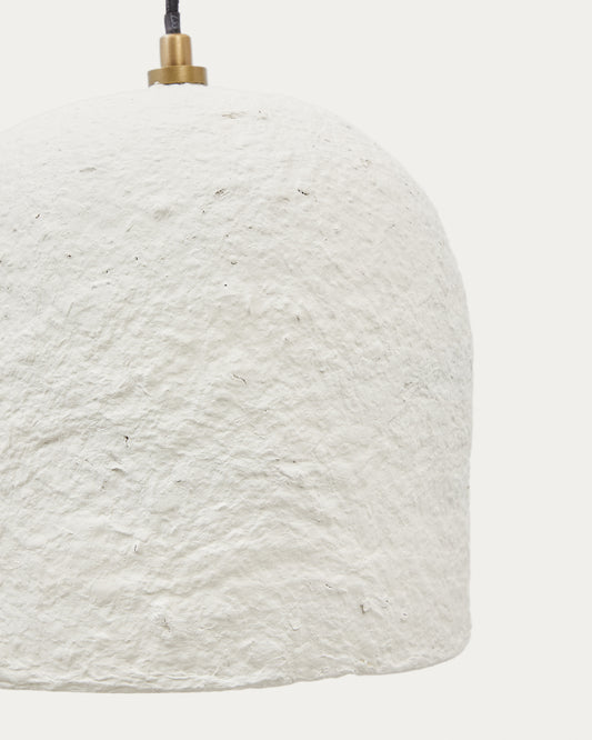 - Luminaire suspendu en papier mâché avec finition blanche.