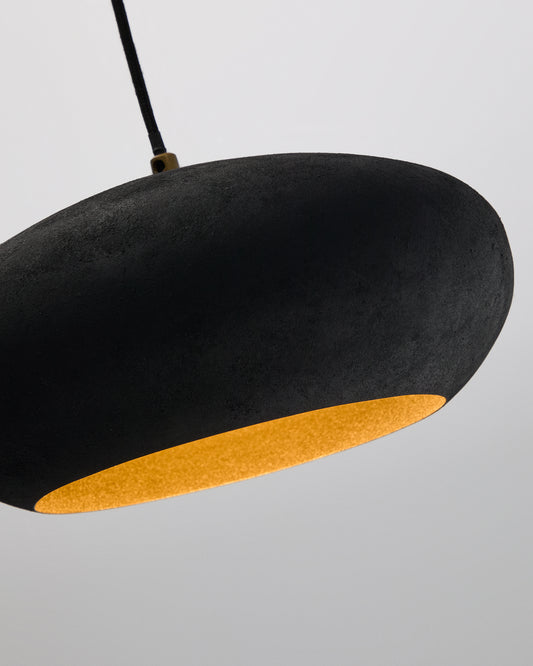 - Plafonnier en métal avec finition effet terre cuite noire.