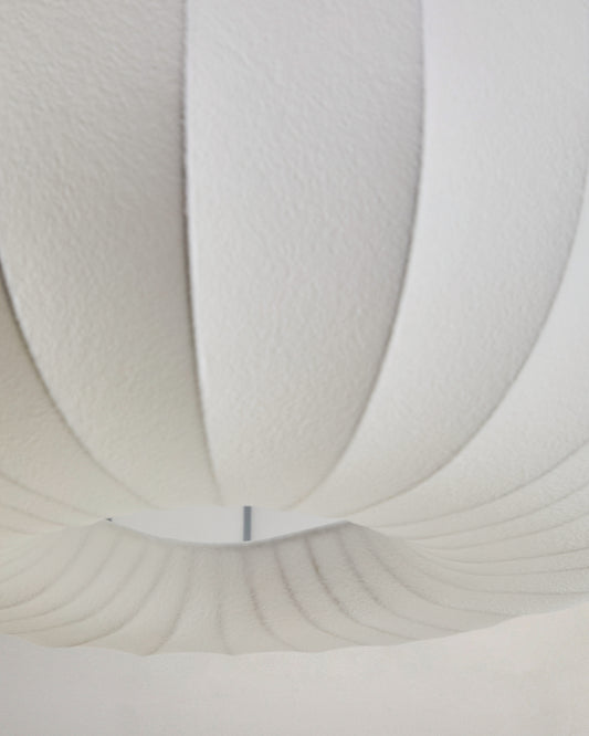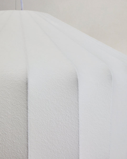 - Abat-jour fabriqué à l’aide d’une technique de pulvérisation de fibres synthétiques sur une base de tiges en acier en rotation, qui servent de support à la structure.