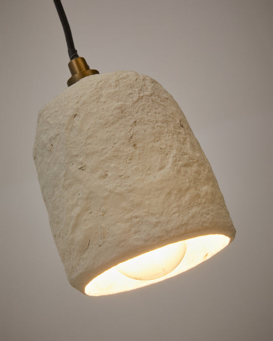 - Luminaire suspendu en papier mâché avec finition blanche.