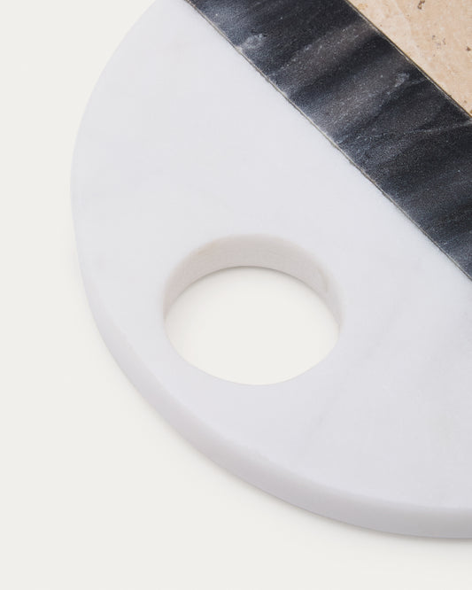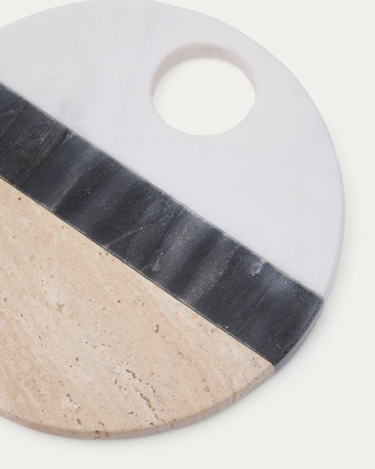 Planche de service ronde Nivol en marbre blanc et noir et travertin