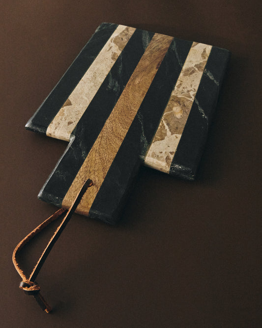 Planche de service Surne en marbre noir, marron et beige 30 x 18 cm