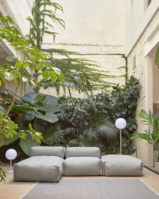 Pouf canapé modulaire Square 100 % extérieur gris clair et aluminium blanc 101 x 101 cm