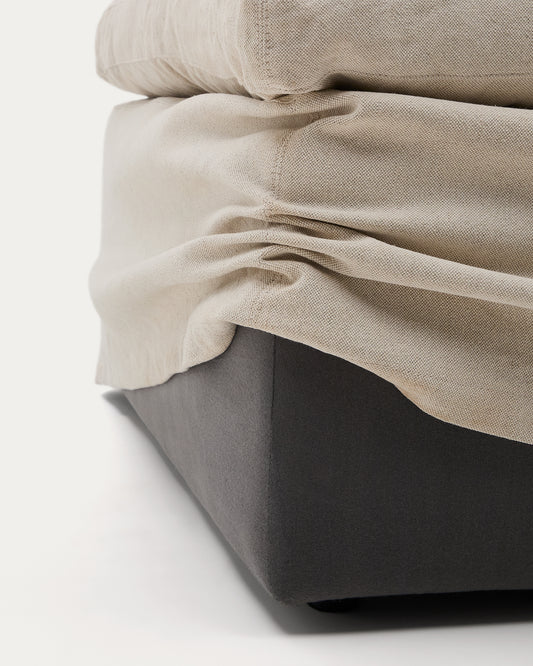 Repose-pieds déhoussable Zenira avec coussin en coton et lin beige 90 x 90 cm