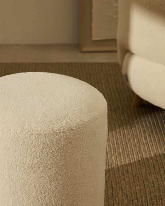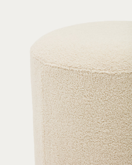 Repose-pieds déhoussable Kaeli en bouclette écru Ø 43 cm