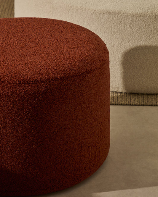 Repose-pieds déhoussable Kaeli en bouclette terracotta Ø 60 cm