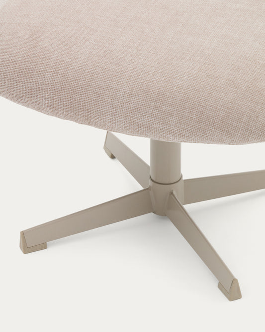 - Repose-pieds rembourré revêtu de tissu structuré avec polyester recyclé et structure en métal gris avec finition micro-texturée mate.