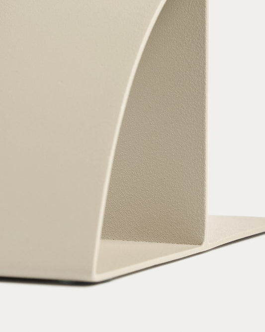 Ce serre-livres en fer se distingue par son design aux lignes droites et aux coins délicatement arrondis, qui apportent une touche contemporaine et élégante à toute étagère ou bureau. Sa structure en fer assure stabilité et résistance, maintenant les livres parfaitement alignés sans se déformer avec l’usage quotidien. Il dispose de protections à la base pour éviter les marques et rayures sur les surfaces, garantissant ainsi la protection de vos meubles. Un accessoire fonctionnel, conçu pour organiser et ajouter une touche de style à tout espace de lecture ou de travail.