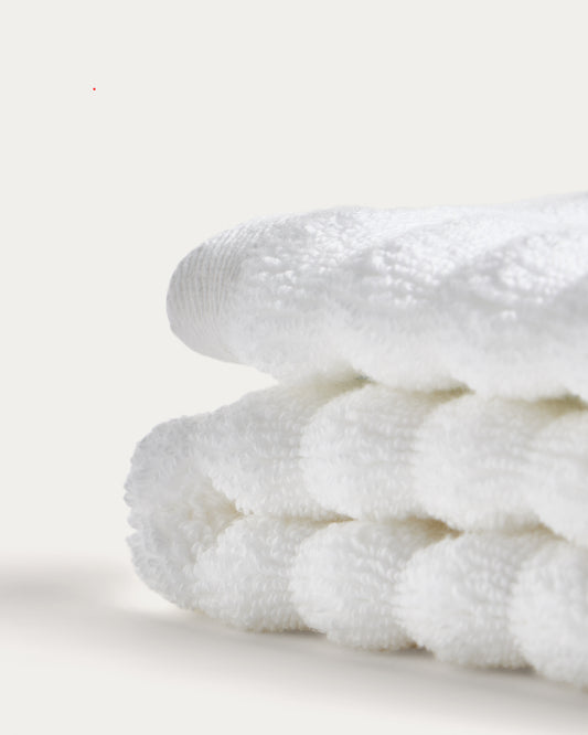 • Serviette de toilette 100 % coton à structure ondulée.