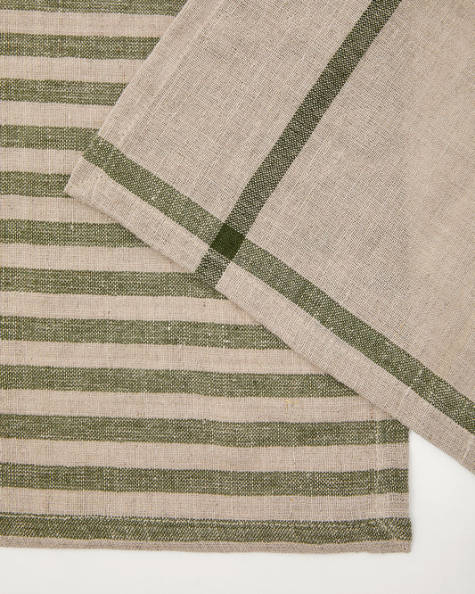Set Jarne de 2 sets de table en lin beige et vert 35 x 50 cm
