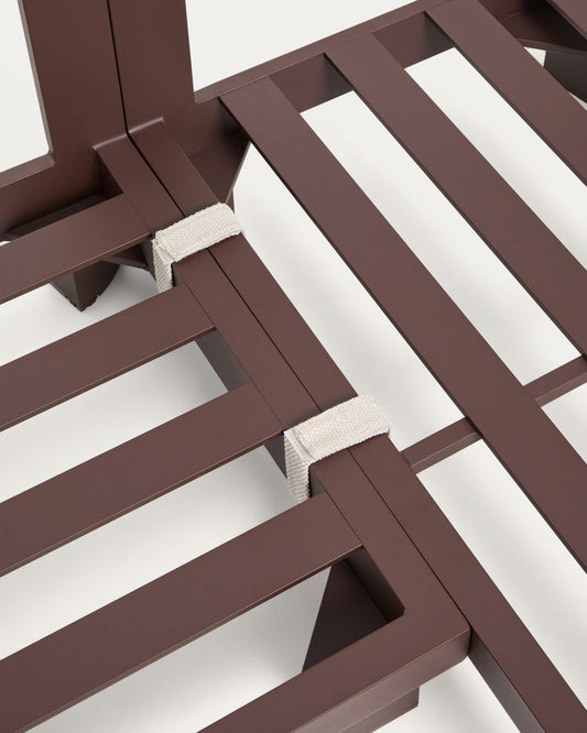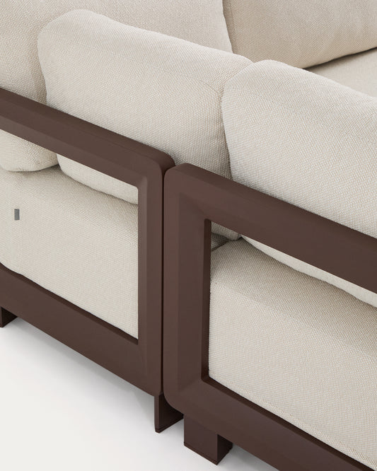 Set Nerano avec canapé d’angle 5 places et table basse en verre trempé et aluminium marron