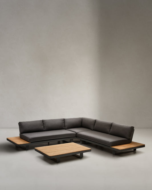 Set Tosqueta canapé d’angle 5 places et table en aluminium et bois de teck certifié FSC 100 %