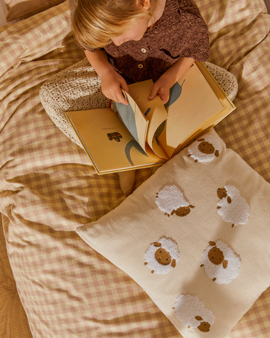 Set Yanil housse de couette, drap-housse et taie d'oreiller 100% coton carreaux rose et beige 70x140cm
